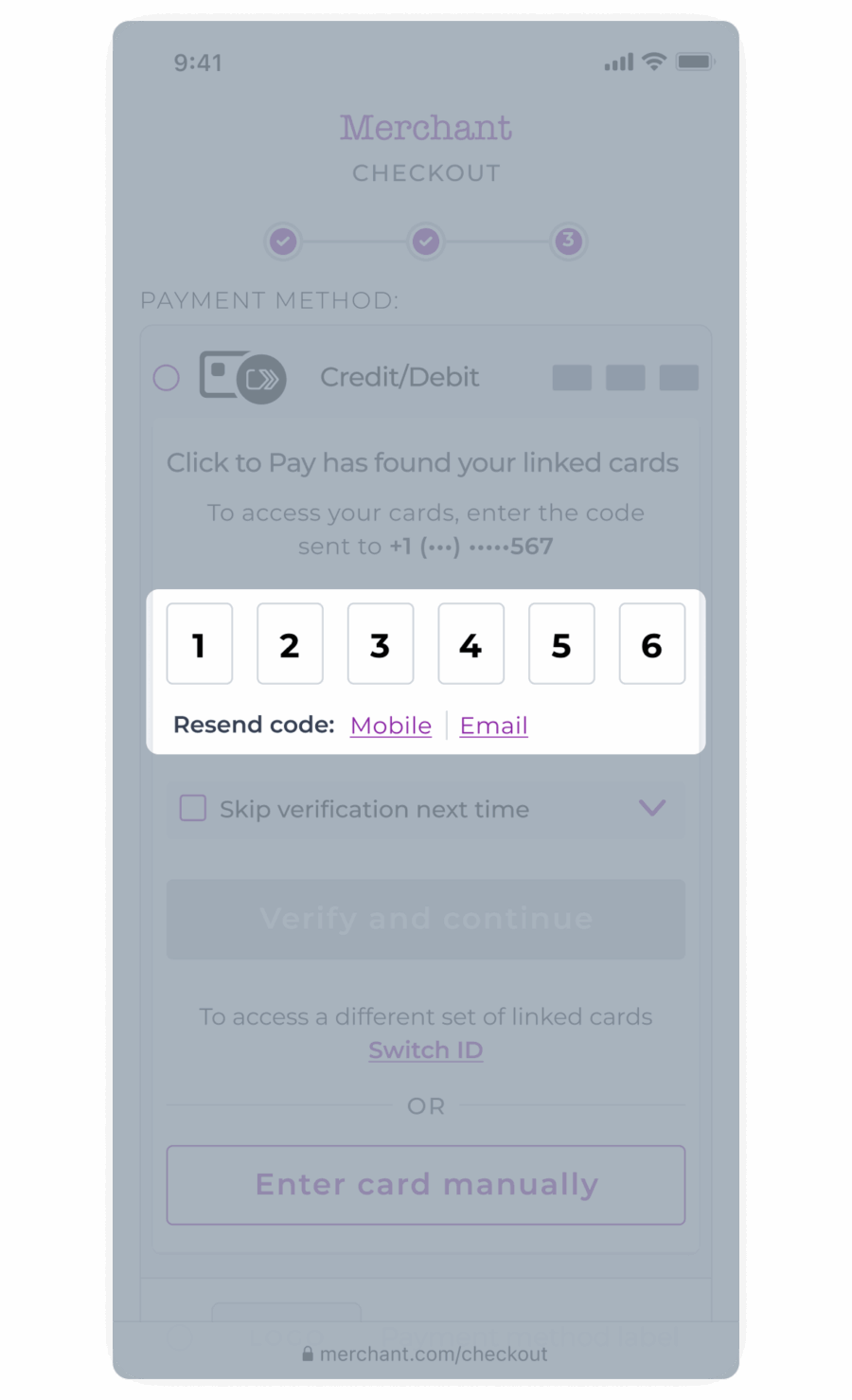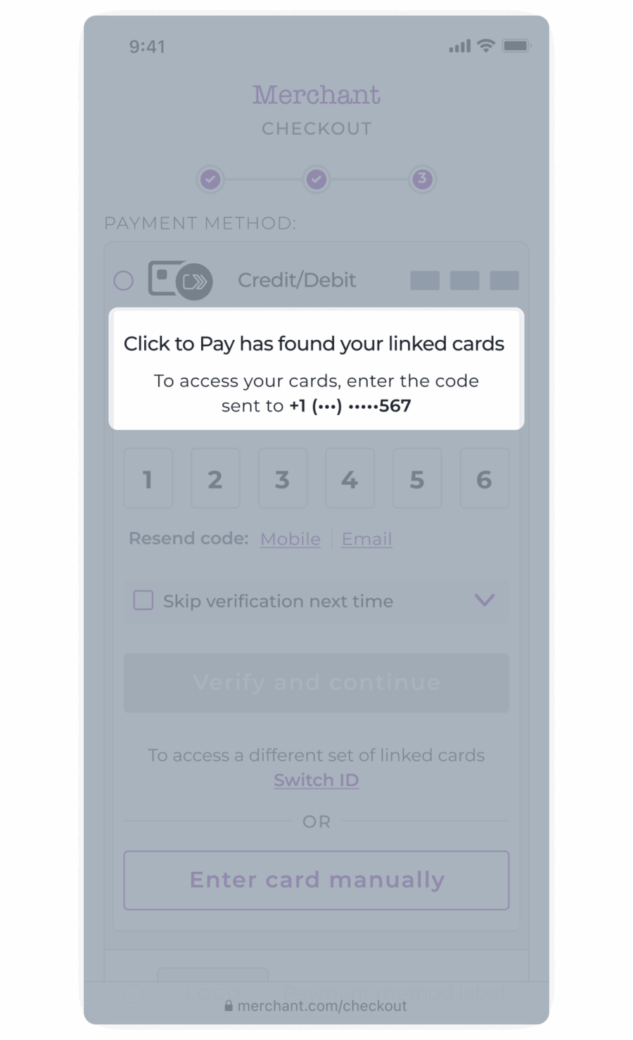 This ensures that only the customer can access their cards. This provides an extra layer of security and increased customer confidence in Click to Pay.