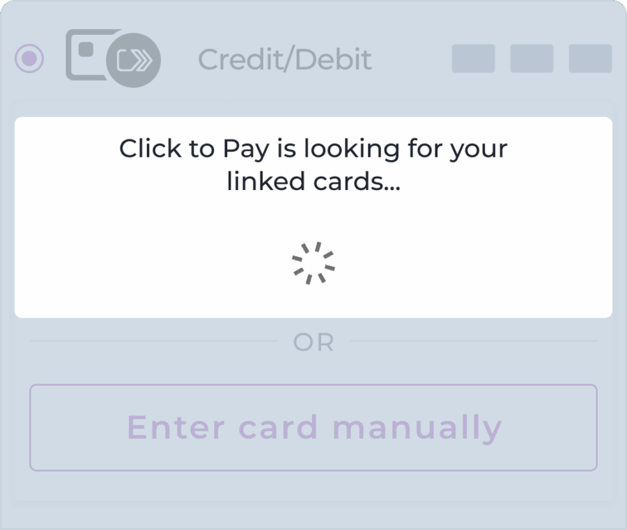 The card loader is displayed when there is latency in retrieving the customer’s linked cards.