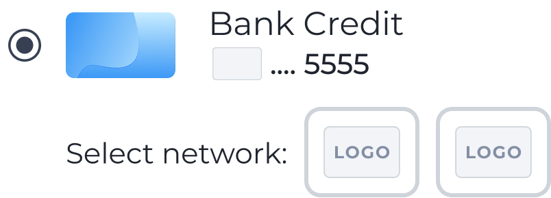 How the customer selects their card is determined by the merchant / PSP. In this example, the card tray is presented as a radio button list.