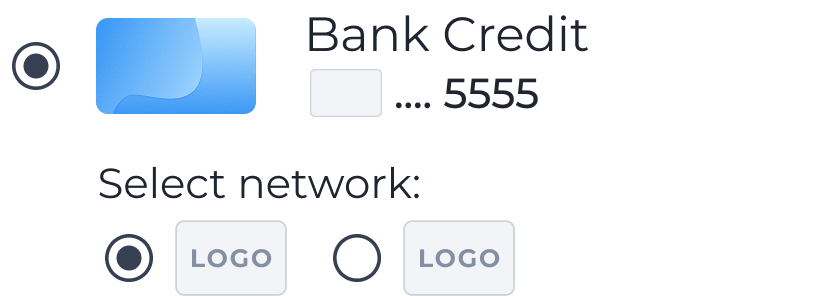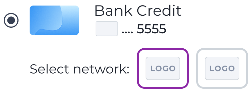 • Clearly show how cardholders can select a brand using standard select methods including, but not limited to, buttons or radio selectors